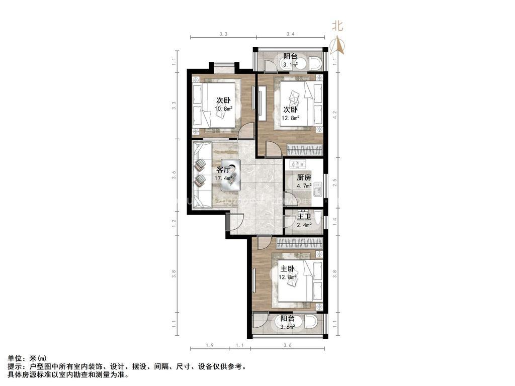 厅室3室1厅1卫2阳台