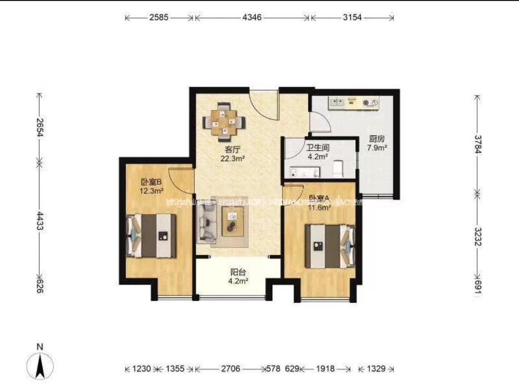 3、南北通透,全明户型,精致装修,干净温馨,家具家电齐全,拎包入住。