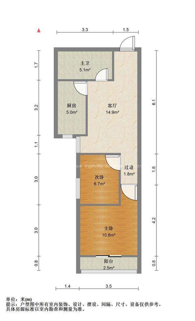 厅室2室1厅1卫0阳台