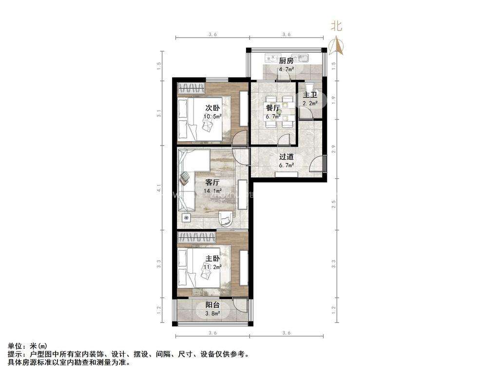 2、户型优势:两室两厅南北卧室,客厅方正好用,单元对讲门,