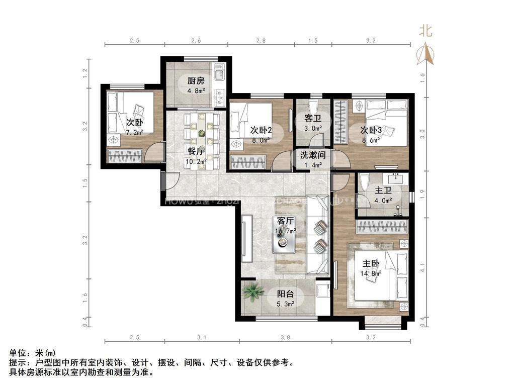 朝向南北 建筑面积128㎡