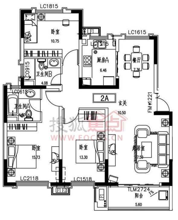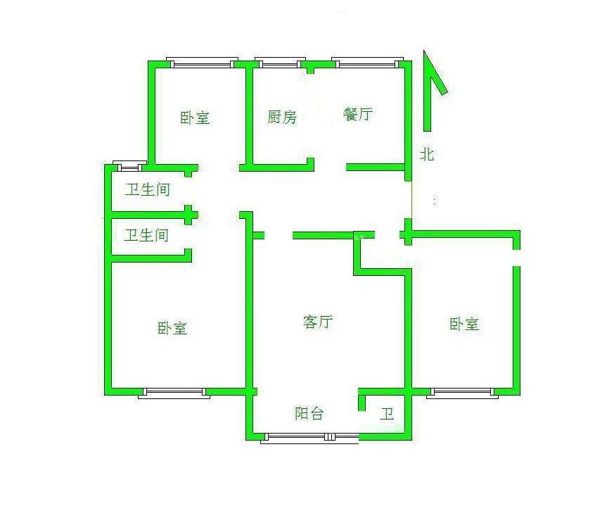 厅室3室2厅2卫1阳台