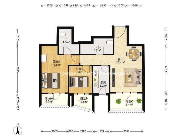 朝向南北 建筑面积94㎡