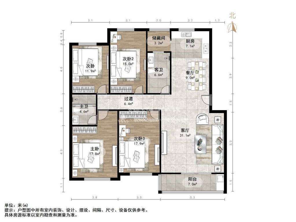 厅室4室2厅2卫1阳台