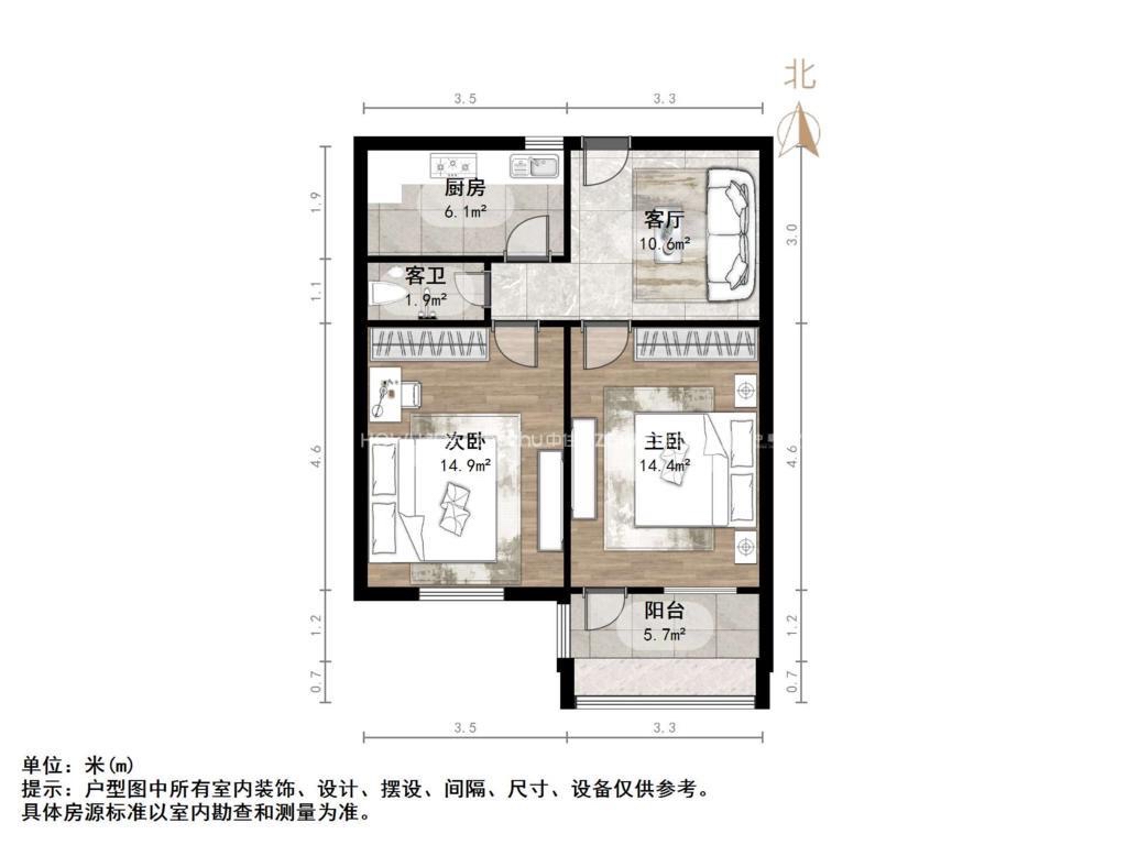 厅室2室1厅1卫1阳台