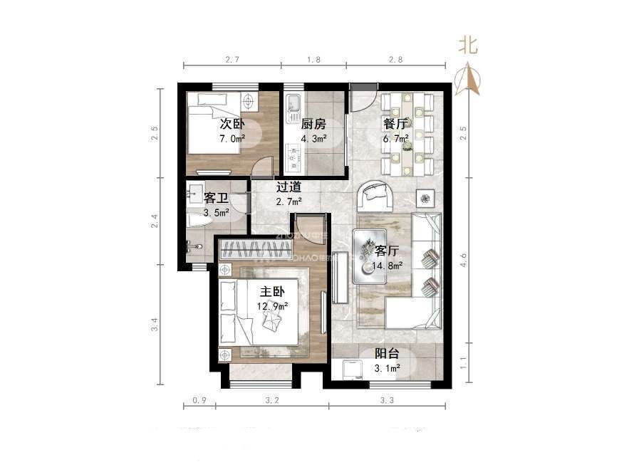 朝向南北 建筑面积90㎡