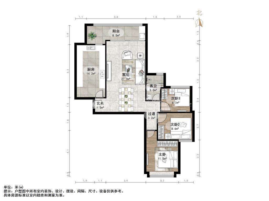 厅室3室1厅1卫1阳台