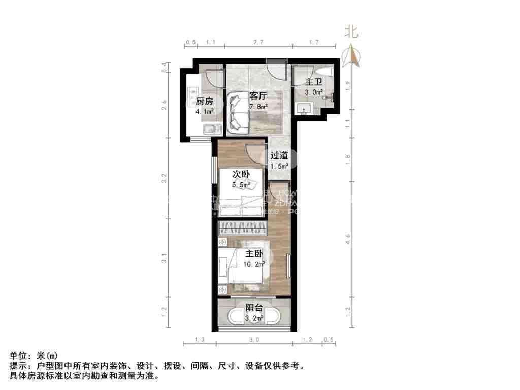 朝向南北 建筑面积58㎡