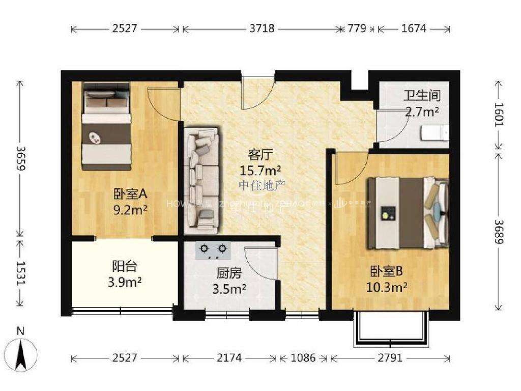 厅室2室0厅1卫1阳台