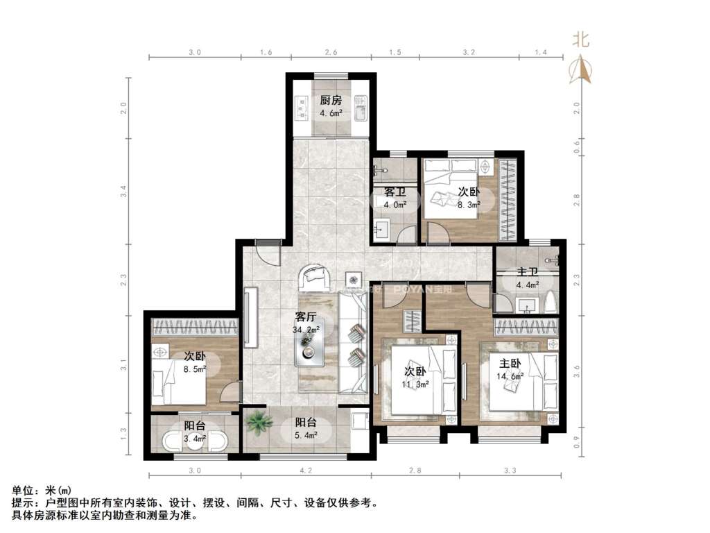 朝向南北 建筑面积140㎡