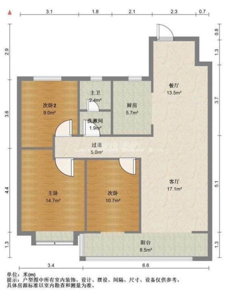 厅室3室2厅1卫1阳台