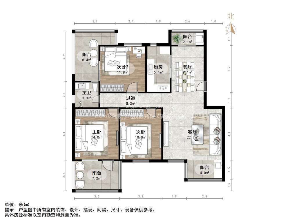 朝向南北 建筑面积110㎡