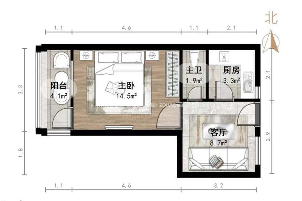 2、户型优势:一室两厅,卧室朝南,客厅方正好用,单元对讲门,安全性高!