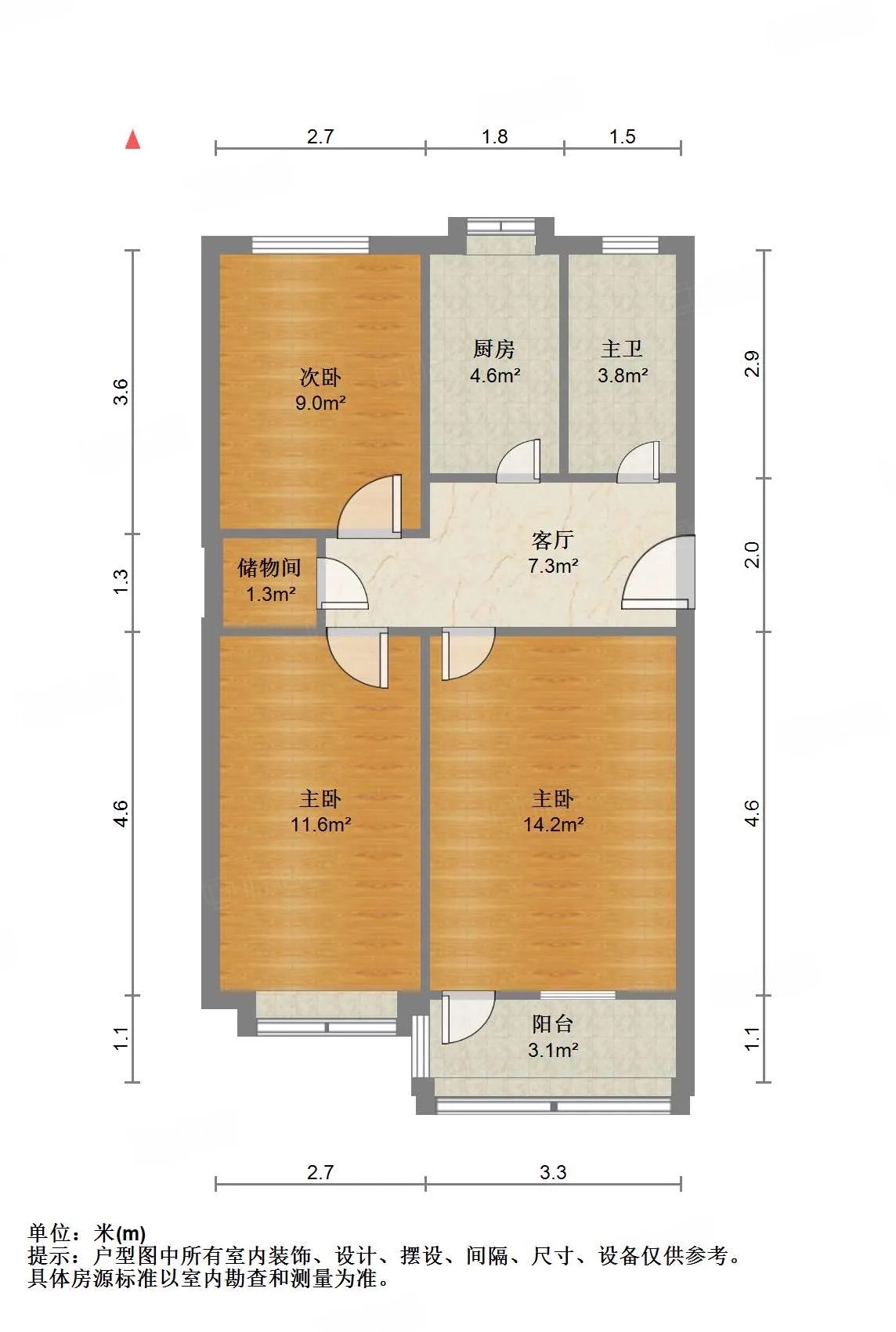 厅室3室1厅1卫1阳台