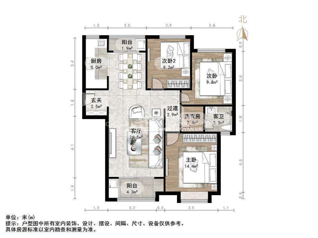 朝向南北 建筑面积117㎡