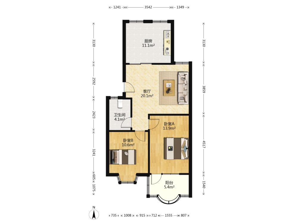 厅室2室2厅1卫1阳台