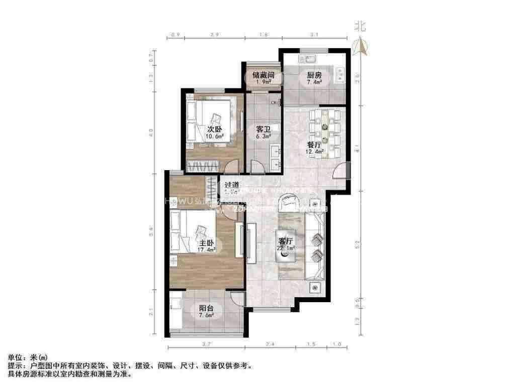 2、户型优势:南北卧室,客厅方正好用,单元对讲门,大院传达,安全性高!