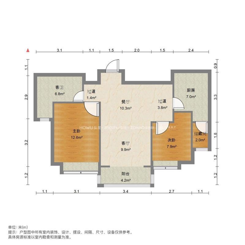 厅室2室2厅1卫1阳台