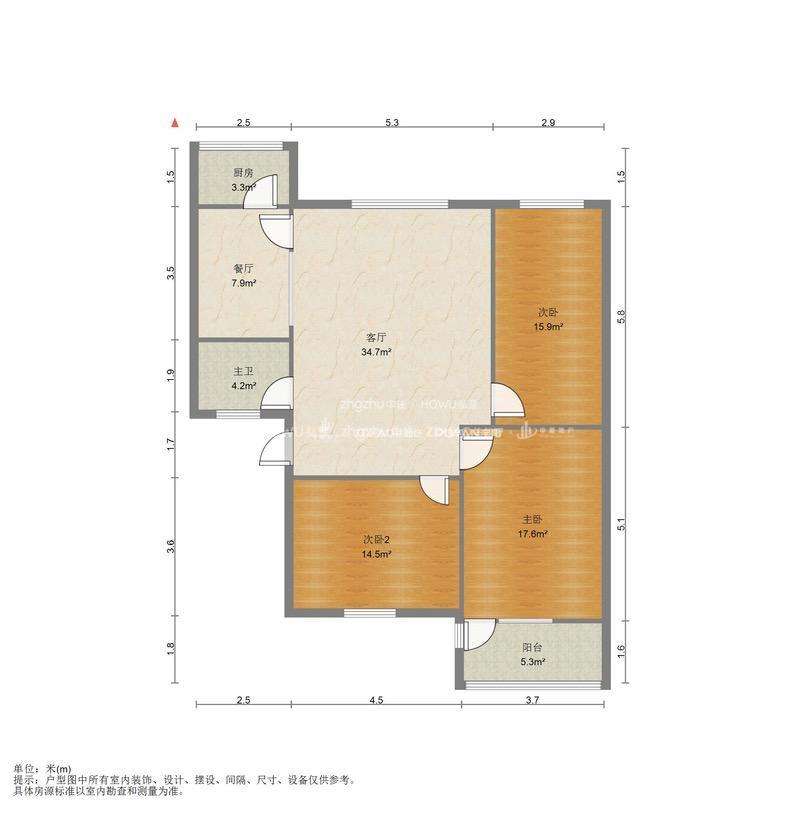 厅室3室2厅1卫1阳台