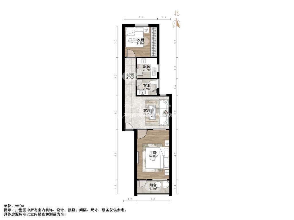 朝向南北 建筑面积67㎡