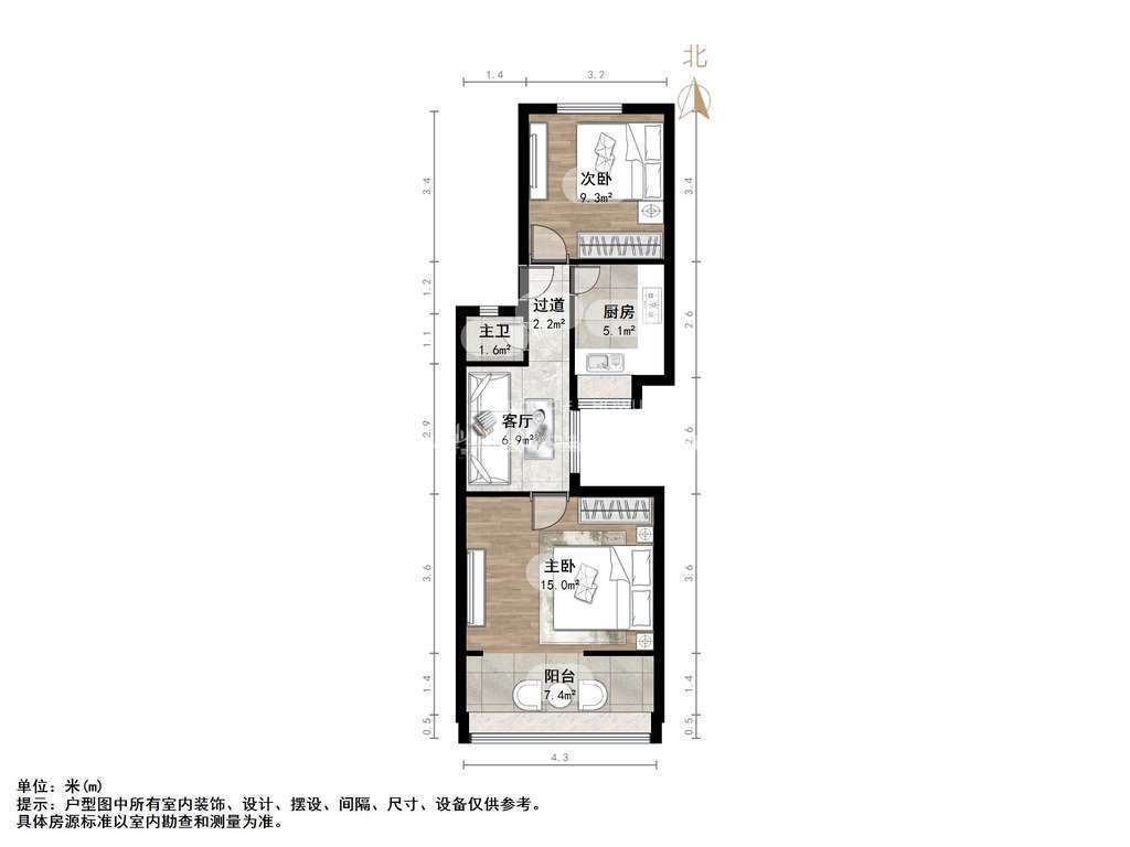 朝向南北 建筑面积56㎡