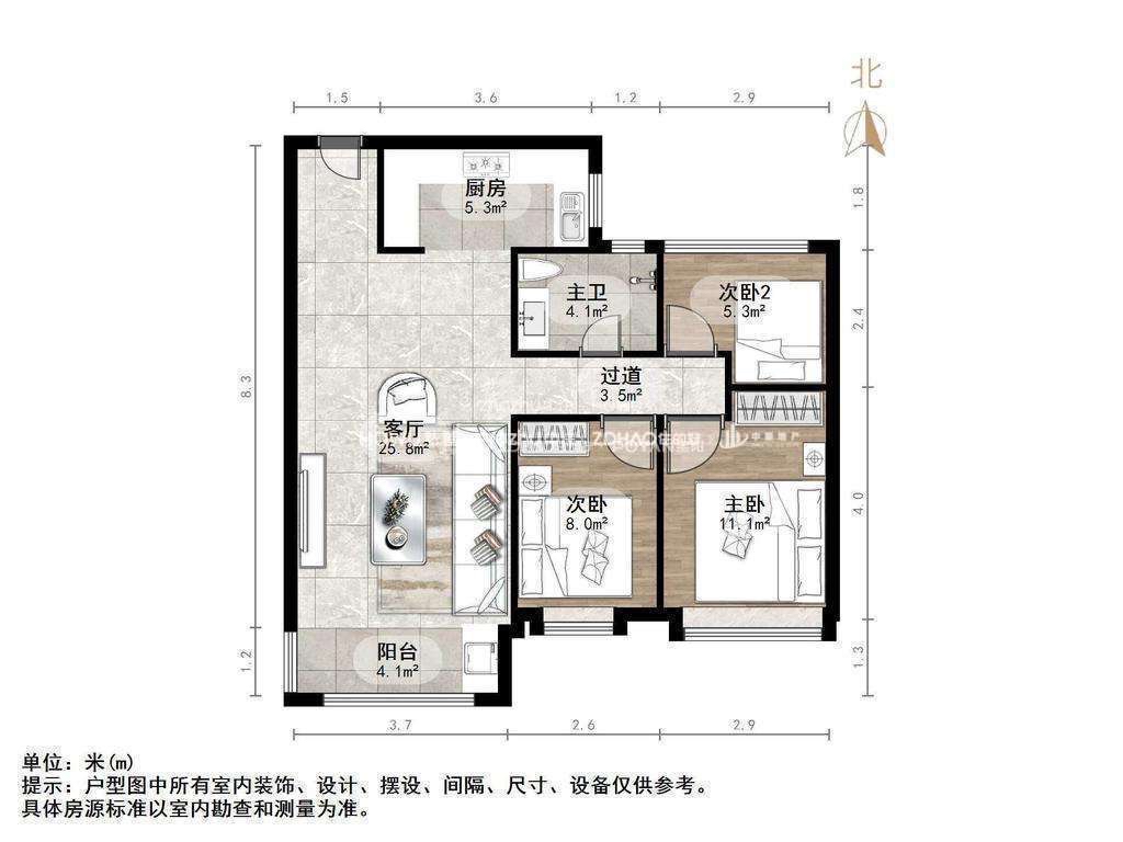 朝向南 建筑面积105㎡