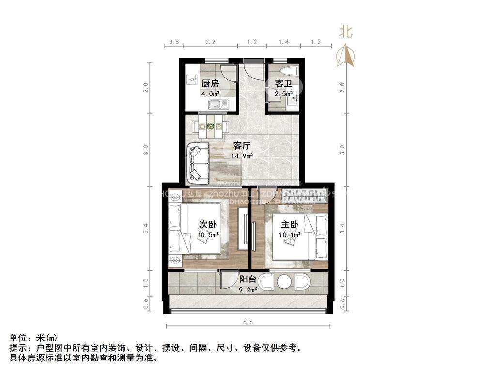 朝向南北 建筑面积66㎡