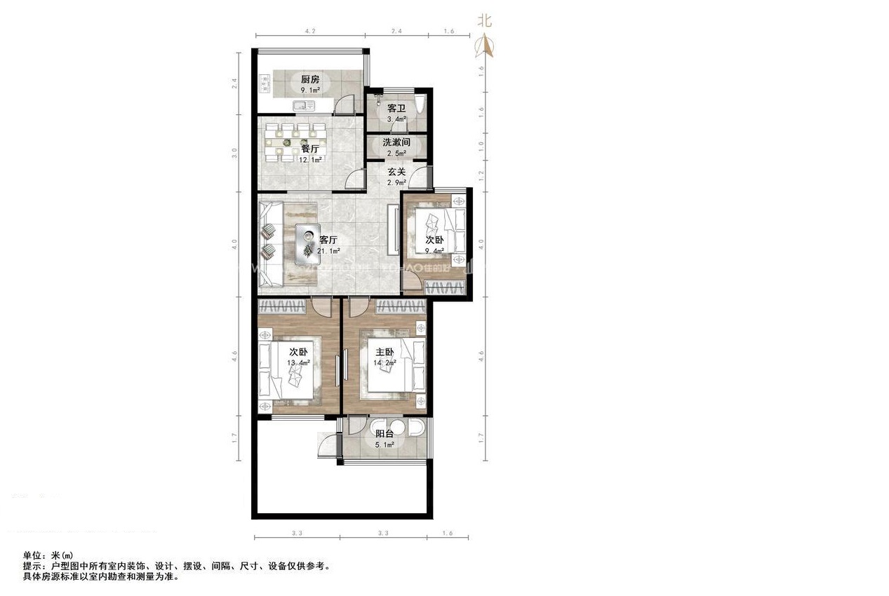 朝向南北 建筑面积119.3㎡