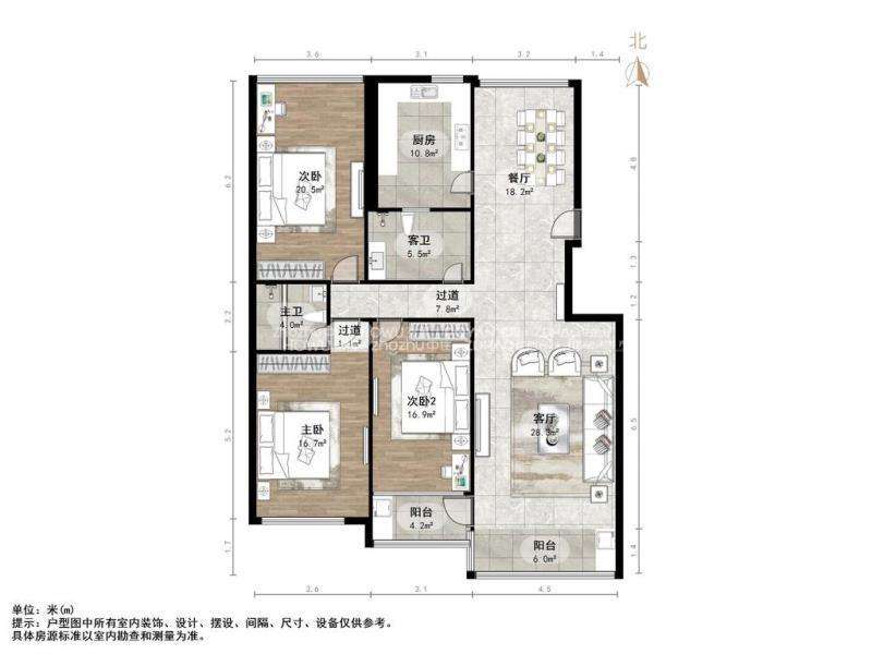 厅室3室2厅2卫2阳台