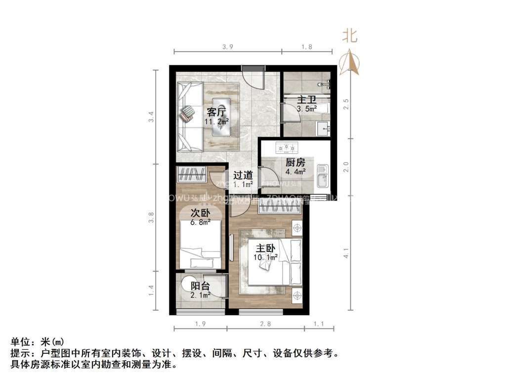 朝向南北 建筑面积61㎡