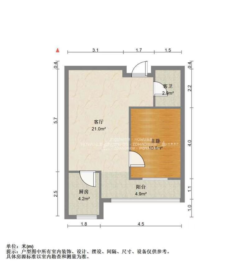 厅室1室1厅1卫1阳台