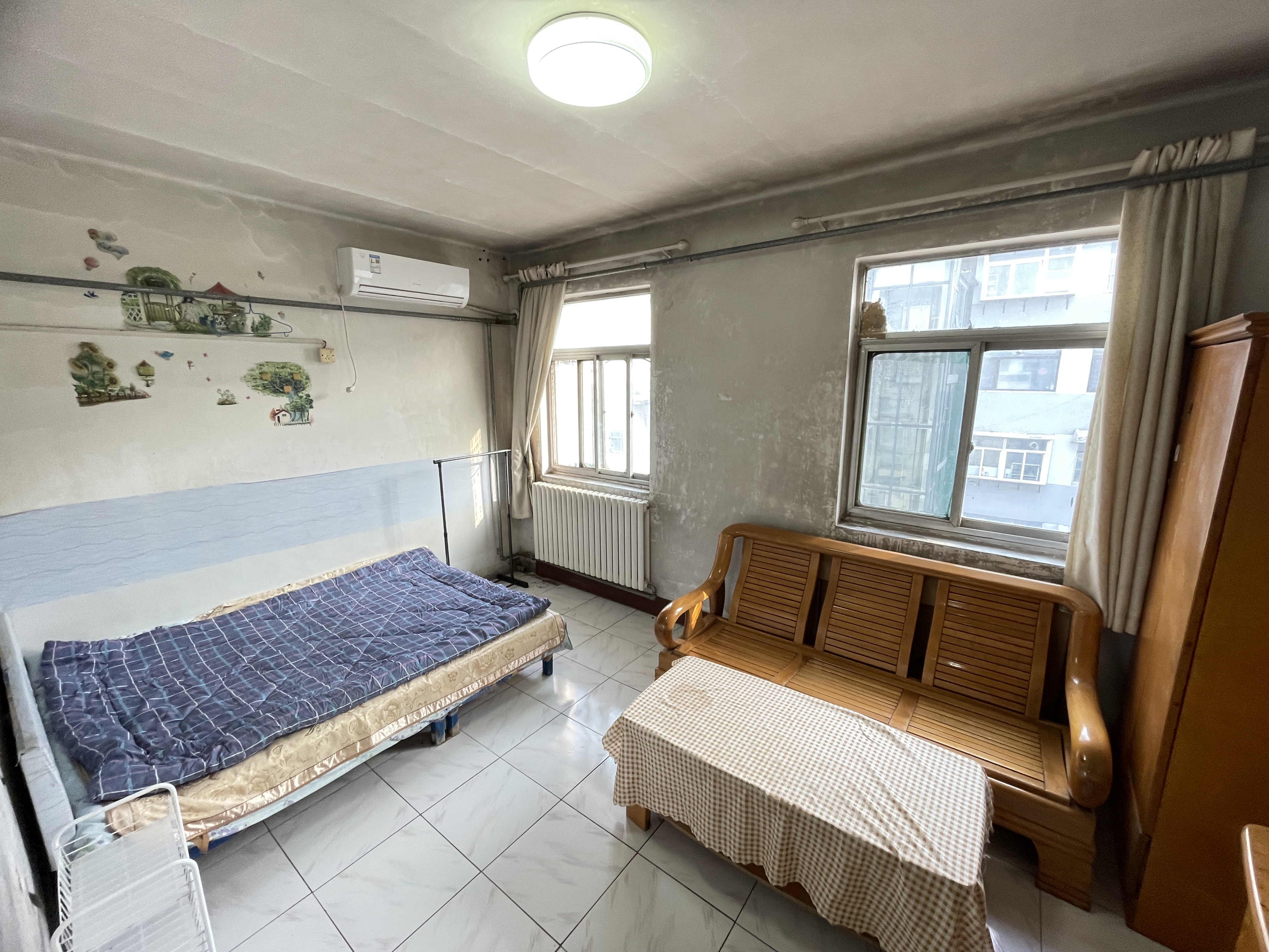 2、户型优势:2室1厅,南北卧室,客厅方正好用,单元对讲门,大院传达,安全性高!