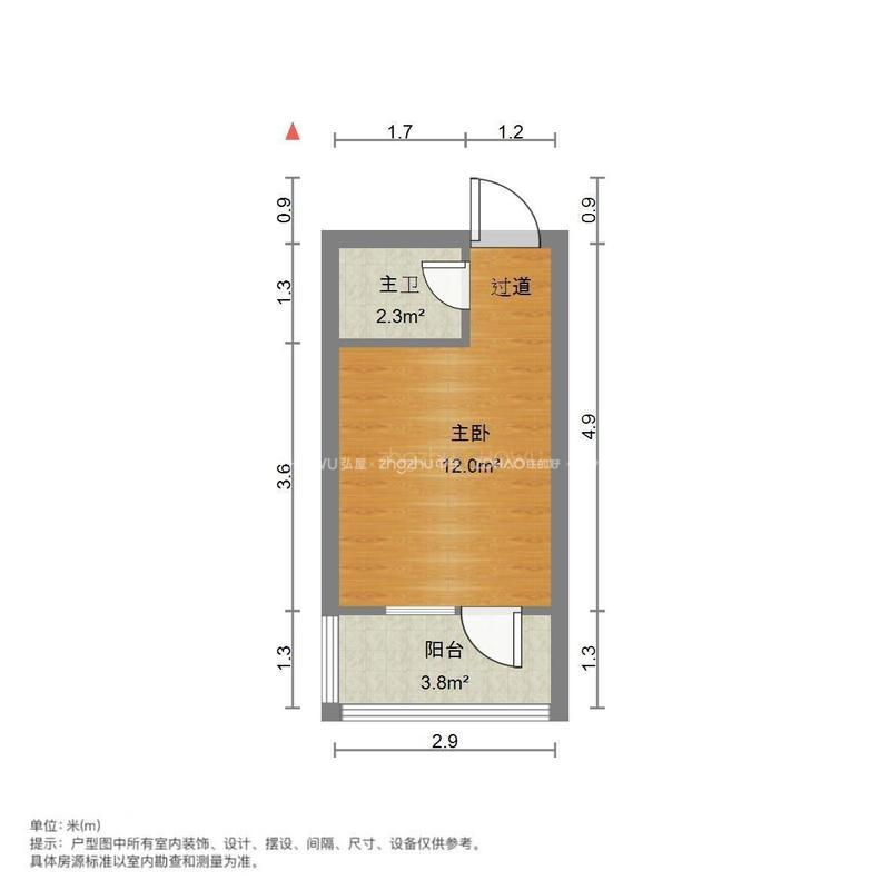 厅室1室0厅1卫1阳台
