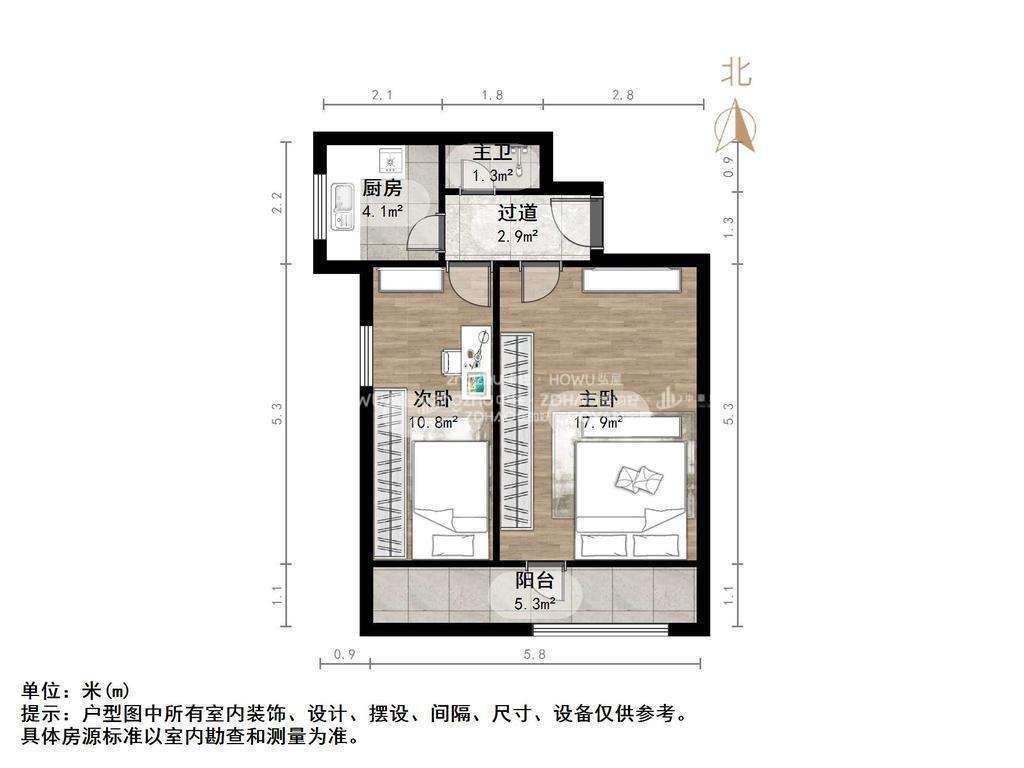 厅室2室0厅1卫1阳台