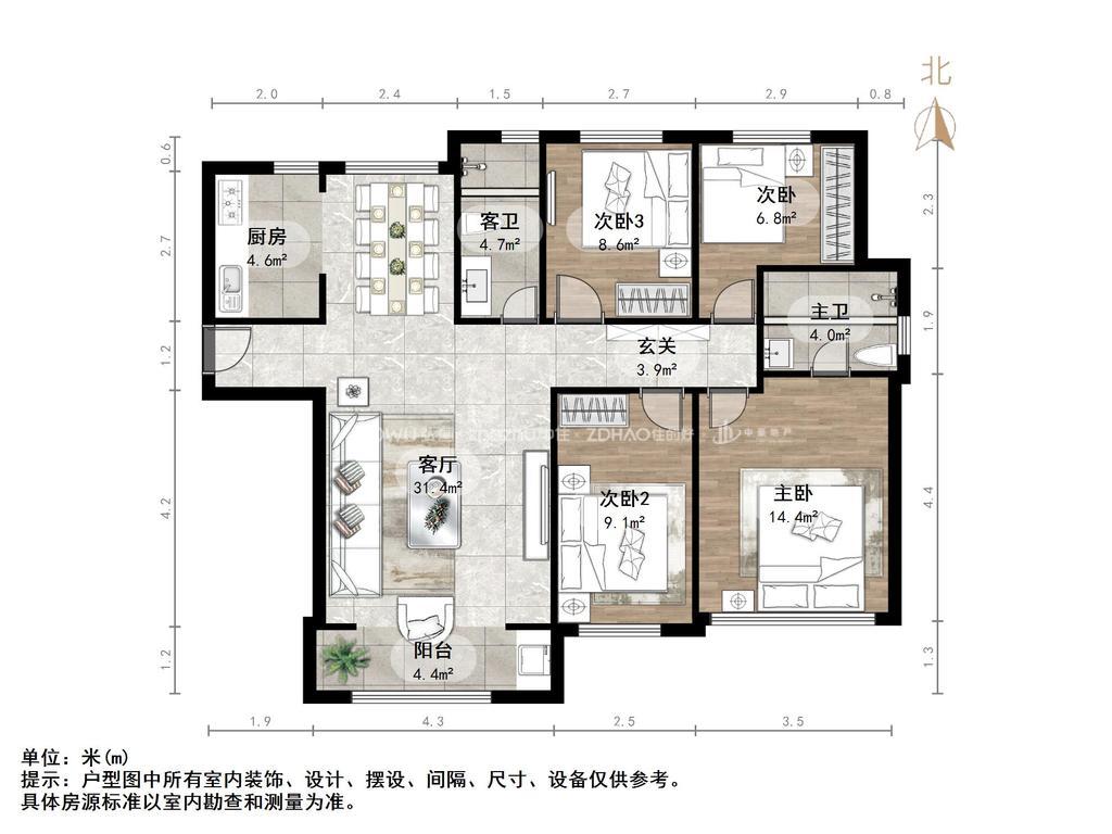 厅室4室2厅2卫1阳台