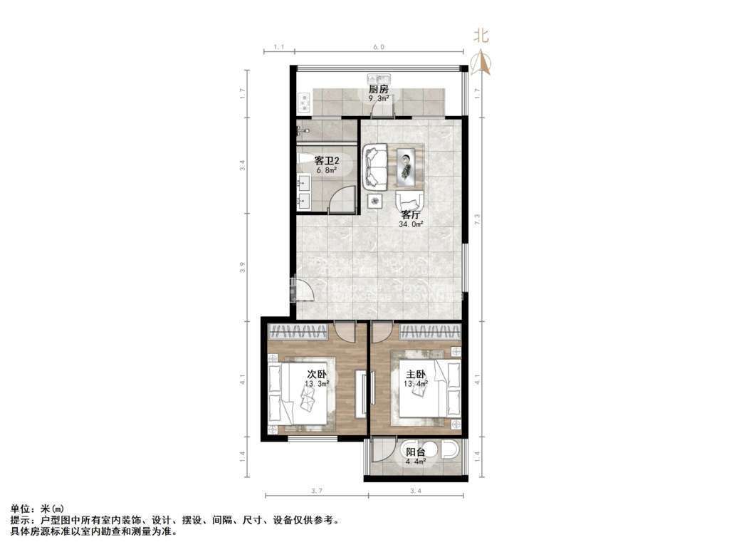 朝向南北 建筑面积97.97㎡