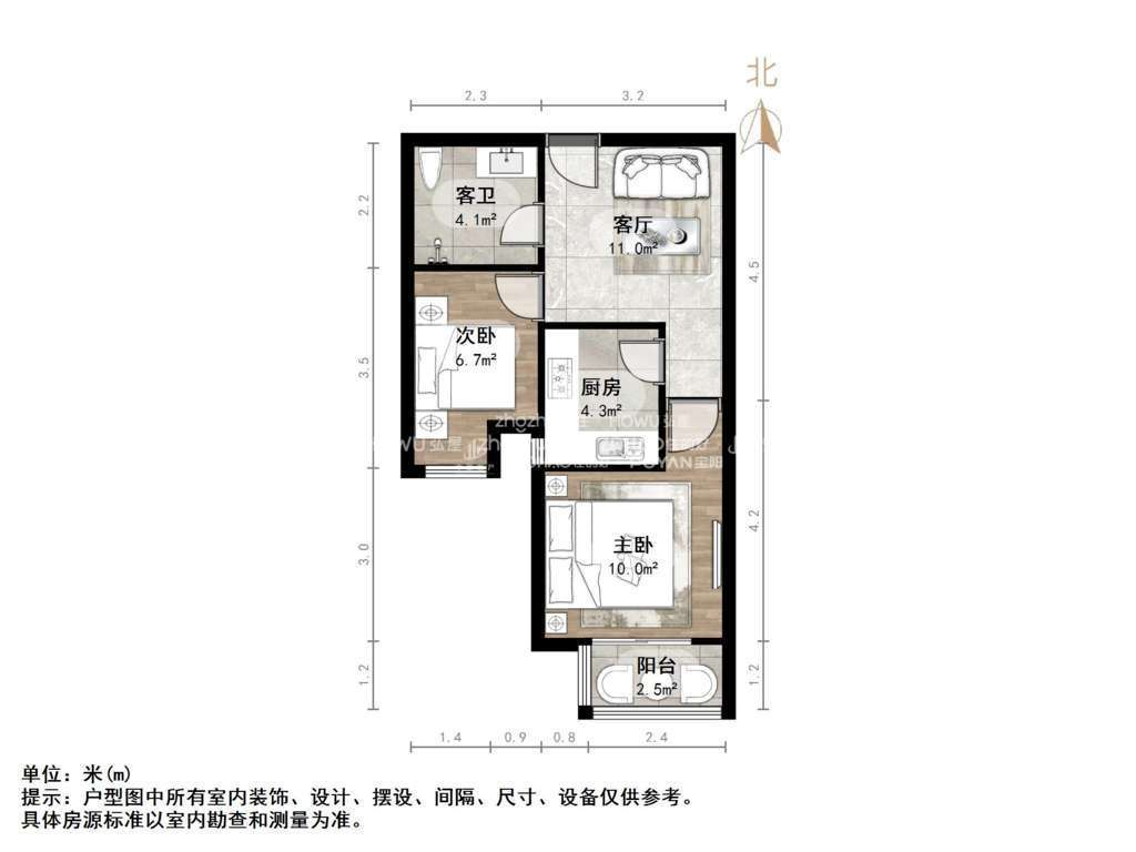 朝向南北 建筑面积60㎡