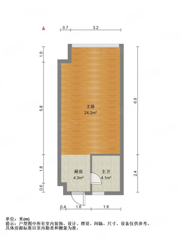 厅室1室0厅1卫0阳台