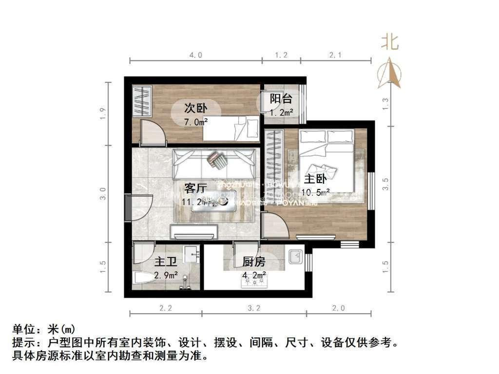 厅室2室1厅1卫1阳台