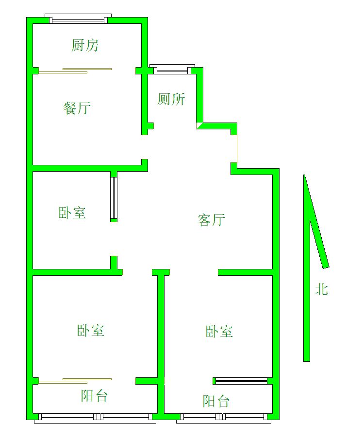 厅室3室2厅1卫2阳台