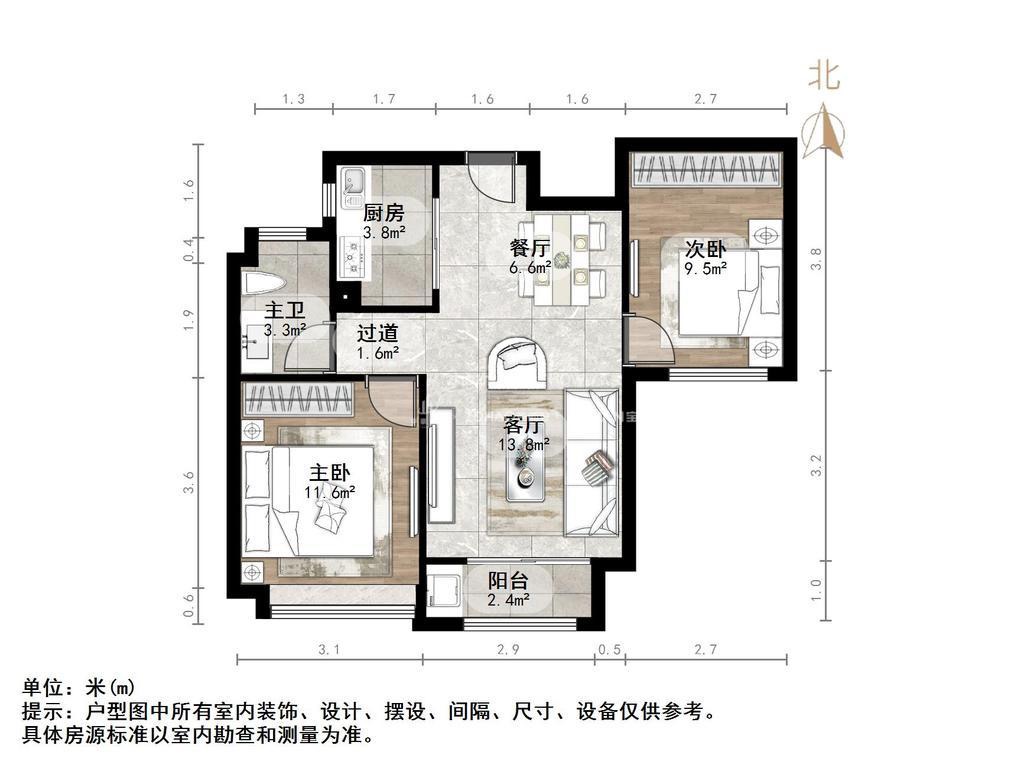 2、户型优势:南北卧室,客厅方正好用,单元对讲门,大院传达,安全性高!