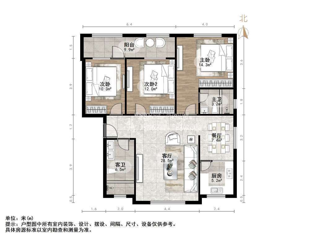 朝向南北 建筑面积120㎡