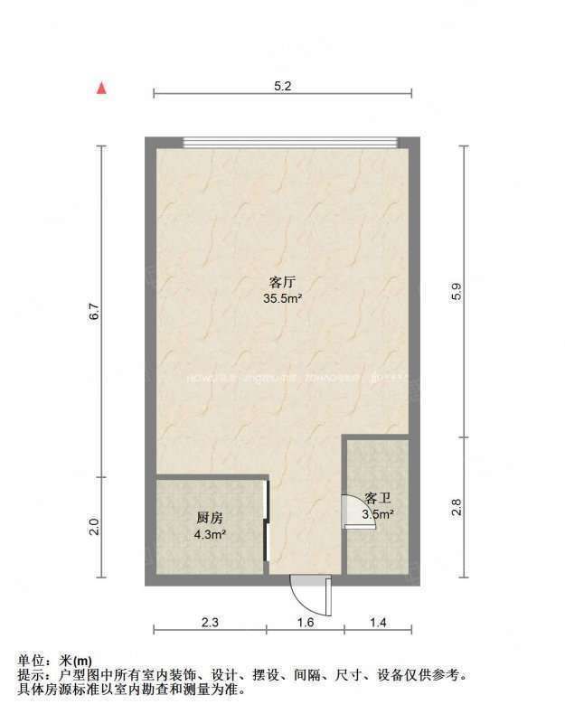 厅室1室1厅1卫1阳台