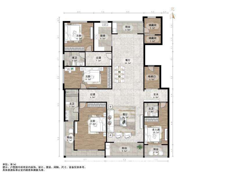 厅室4室2厅3卫2阳台
