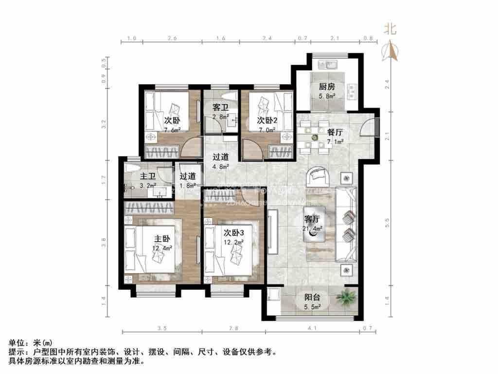 厅室4室2厅2卫1阳台