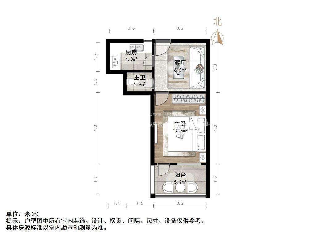 厅室1室1厅1卫1阳台
