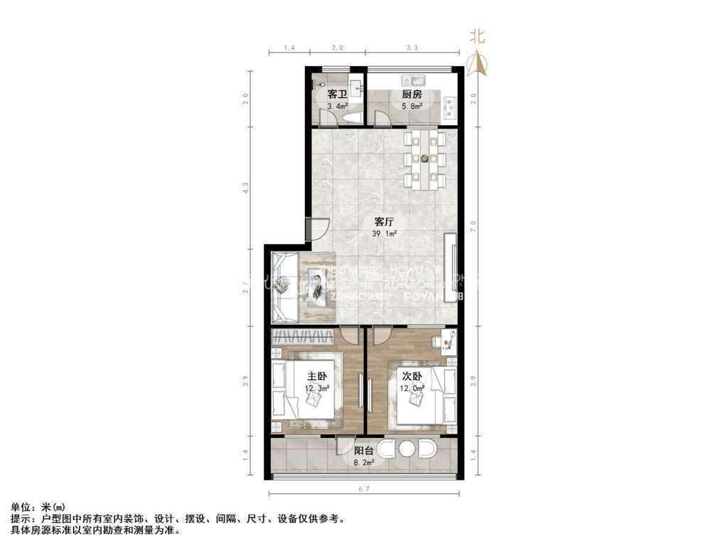 朝向南北 建筑面积96㎡