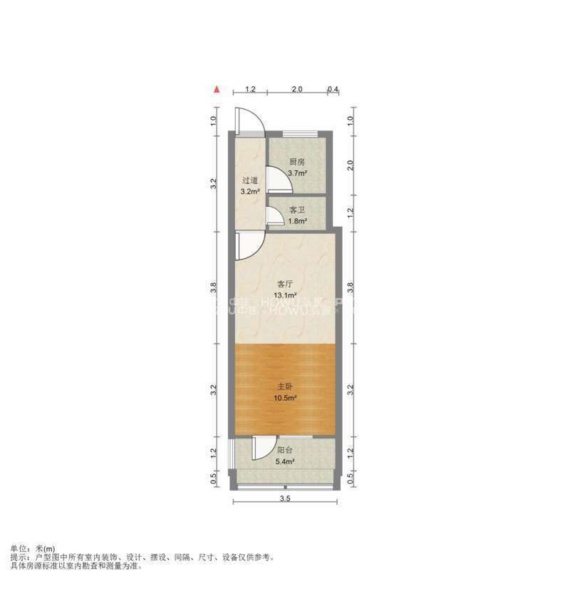 厅室1室1厅1卫1阳台