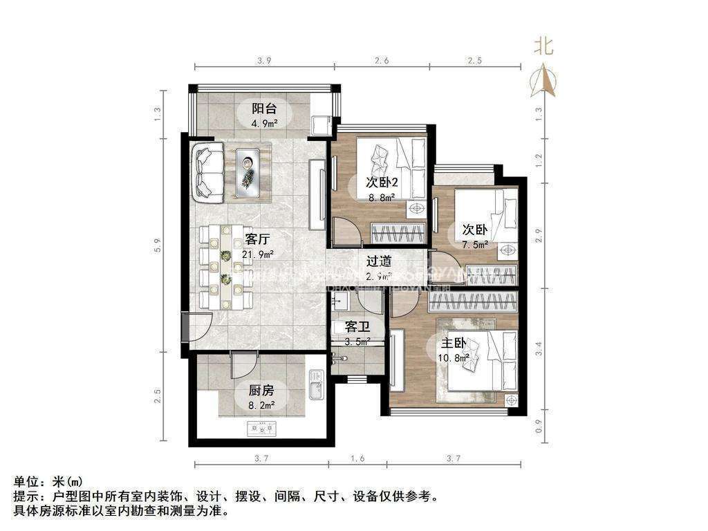 厅室3室2厅1卫1阳台