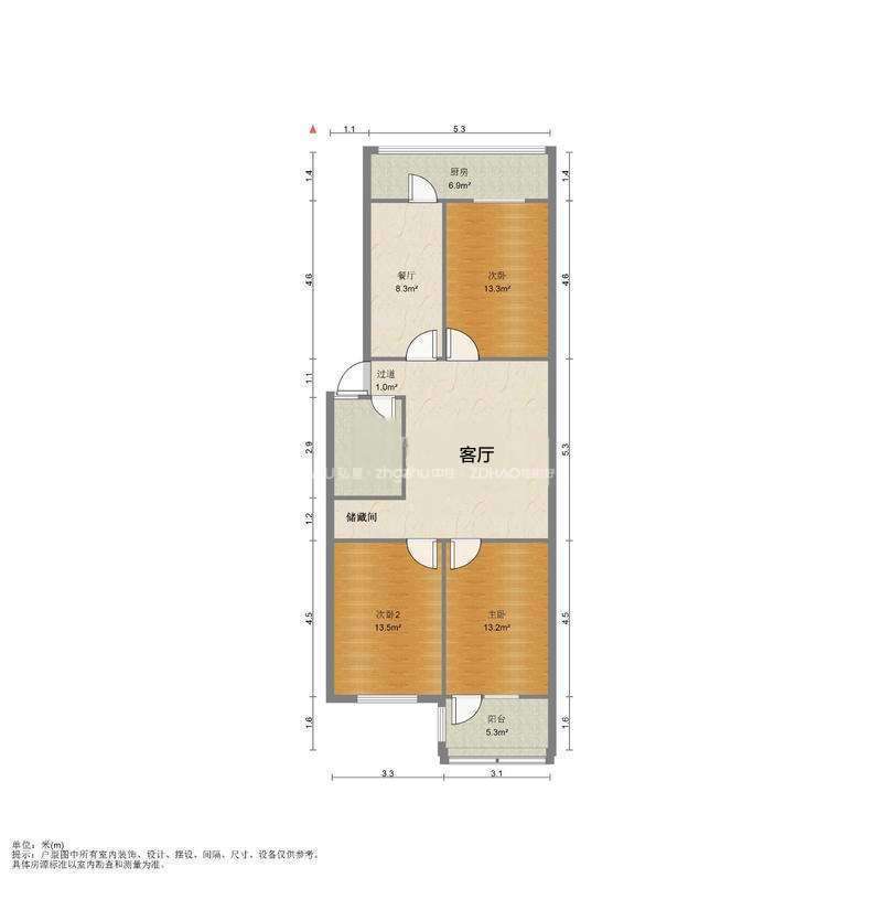 厅室3室2厅1卫1阳台